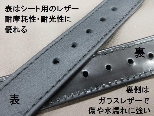 表側は丈夫な車などの本革シート用の革で製作したサドルバッグ・ツールバッグ用ベルト